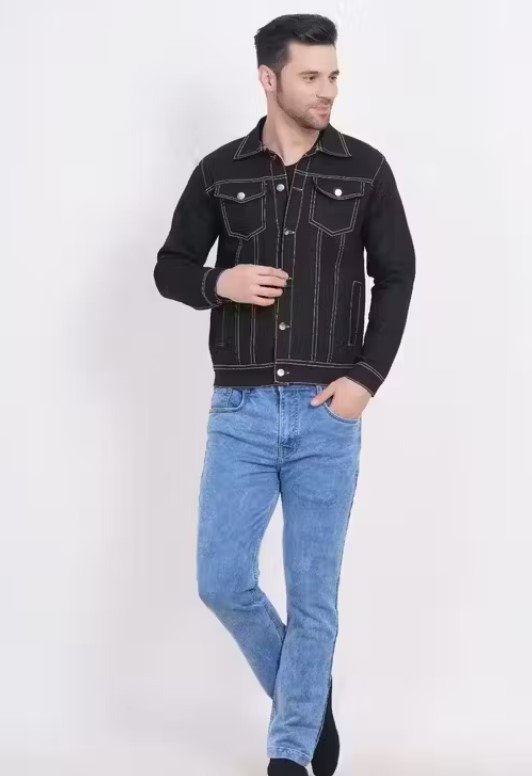 Men’s denim regular fit jacket – rugged, versatile, and perfect for everyday street style. Easy to pair with tees or hoodies for a bold look.