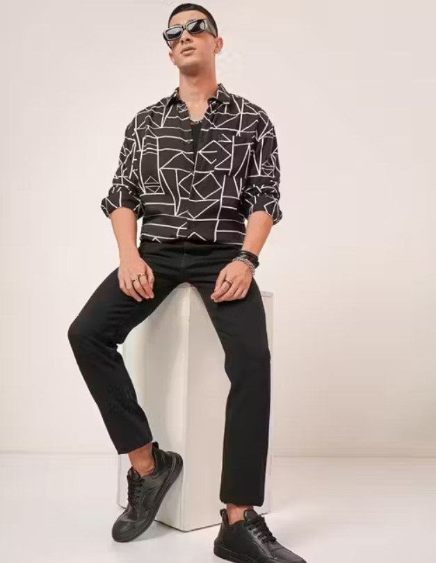 The Ketch Men's Abstract Regular Fit Black Shirt combines modern design with comfort. Featuring a unique abstract pattern on a classic black shirt, it adds a touch of artistic flair to your wardrobe. The regular fit ensures a comfortable, relaxed look while maintaining a sharp silhouette. Ideal for both casual and semi-formal events, this shirt pairs well with jeans or chinos for a stylish, laid-back appearance.