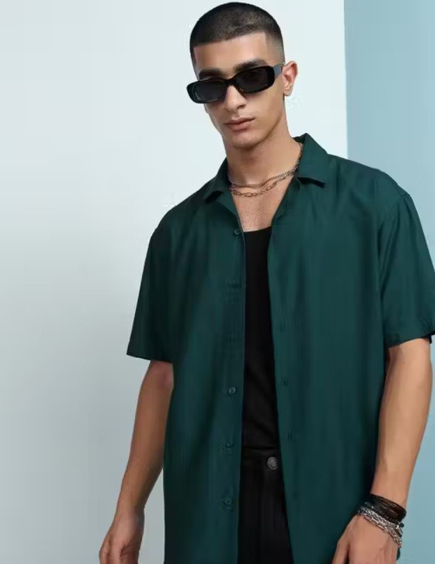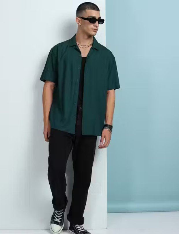 The Ketch Men's Solid Green Shirt with Cutaway Collar is a wardrobe essential for effortless, everyday style. Made to be worn over a t-shirt, this shirt features a clean solid color, ideal for creating a smart casual layered look. The cutaway collar adds a refined edge, while the relaxed yet structured fit ensures versatility—whether you're heading out for a coffee or a casual meet-up. Made from breathable, soft-touch fabric, this shirt pairs perfectly with jeans, cargos, or joggers.