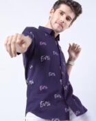 The Ketch Men's Typography Slim Fit Purple Shirt is for those who like to make a statement with their style. Crafted in a deep purple color with striking typography prints, this shirt offers a creative edge to your everyday outfits. The slim fit cut ensures a flattering silhouette, while the cutaway collar adds a touch of sophistication. Ideal for casual outings, creative workspaces, or weekend get-togethers, this shirt pairs effortlessly with denim, chinos, or even layered over a plain tee.