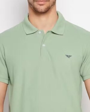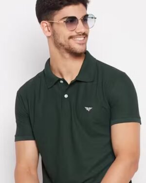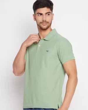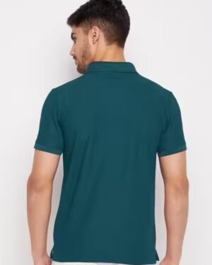 Classic solid polo T-shirt for men by RISS, made with a soft cotton blend. Features a stylish collar, half sleeves, and a premium chest logo. Perfect for daily, office, or casual wear.