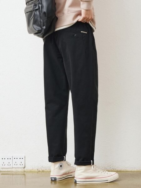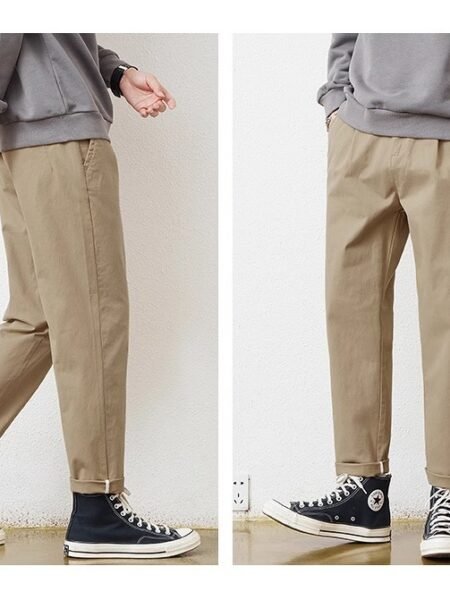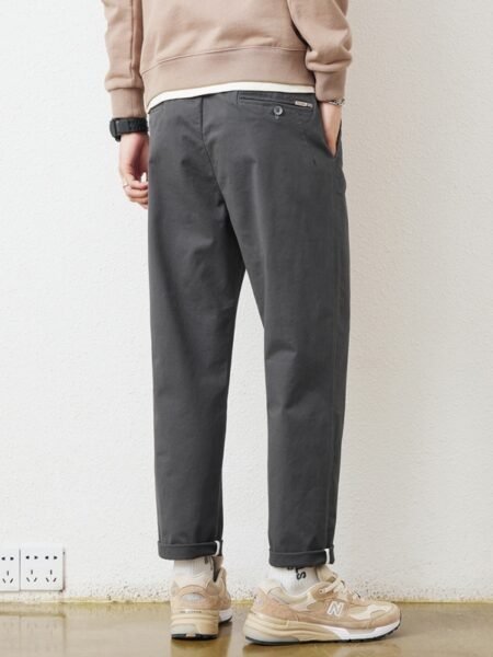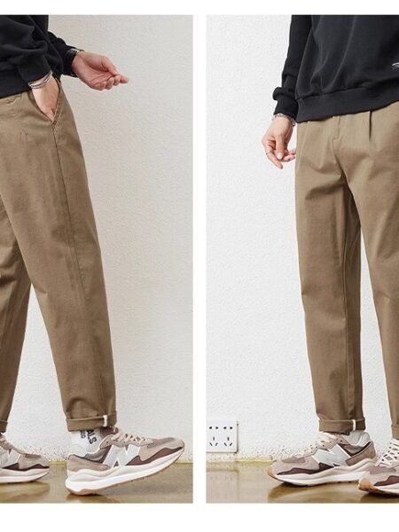 These men’s solid-color work pants feature a straight-leg design with a comfortable mid-waist fit, making them ideal for office, daily work, and smart casual wear with a clean, professional look.