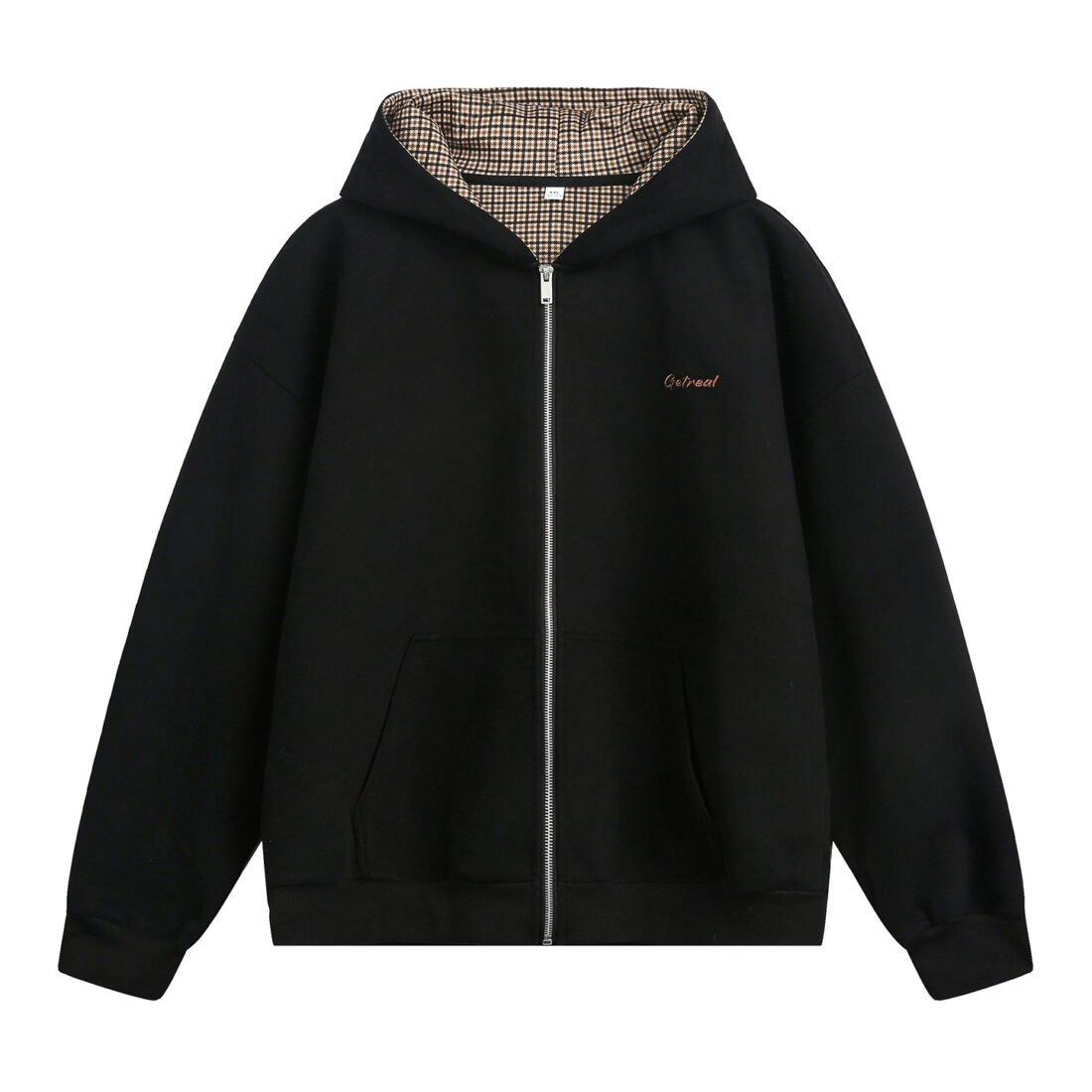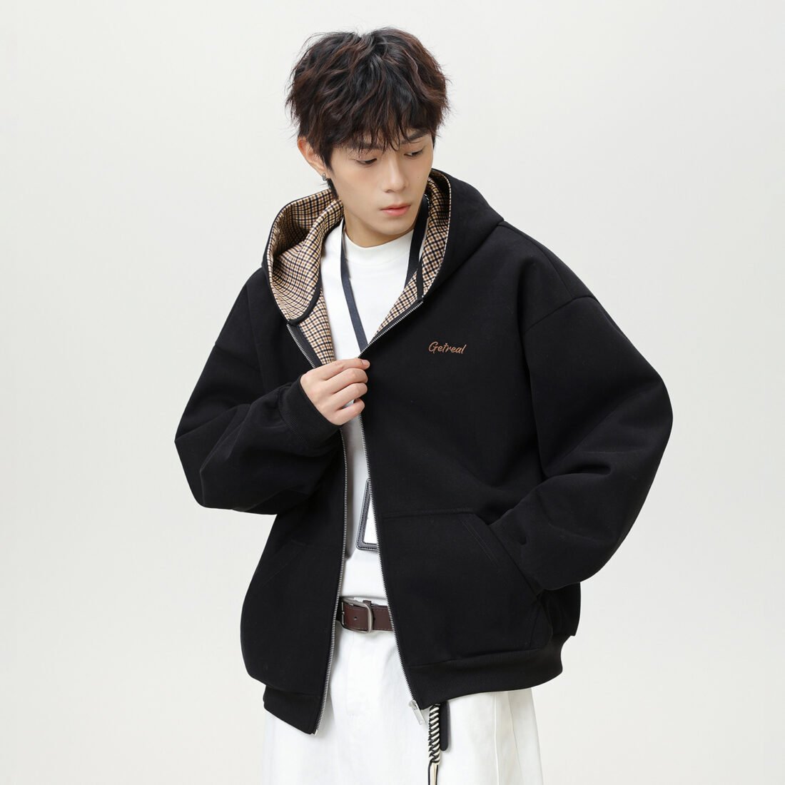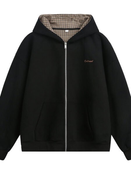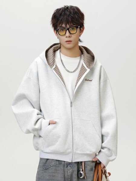 Houndstooth Contrast Color Inner Hooded Sweater Men's Autumn