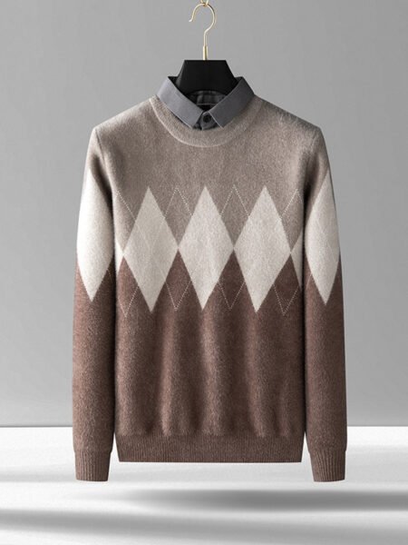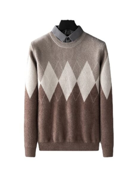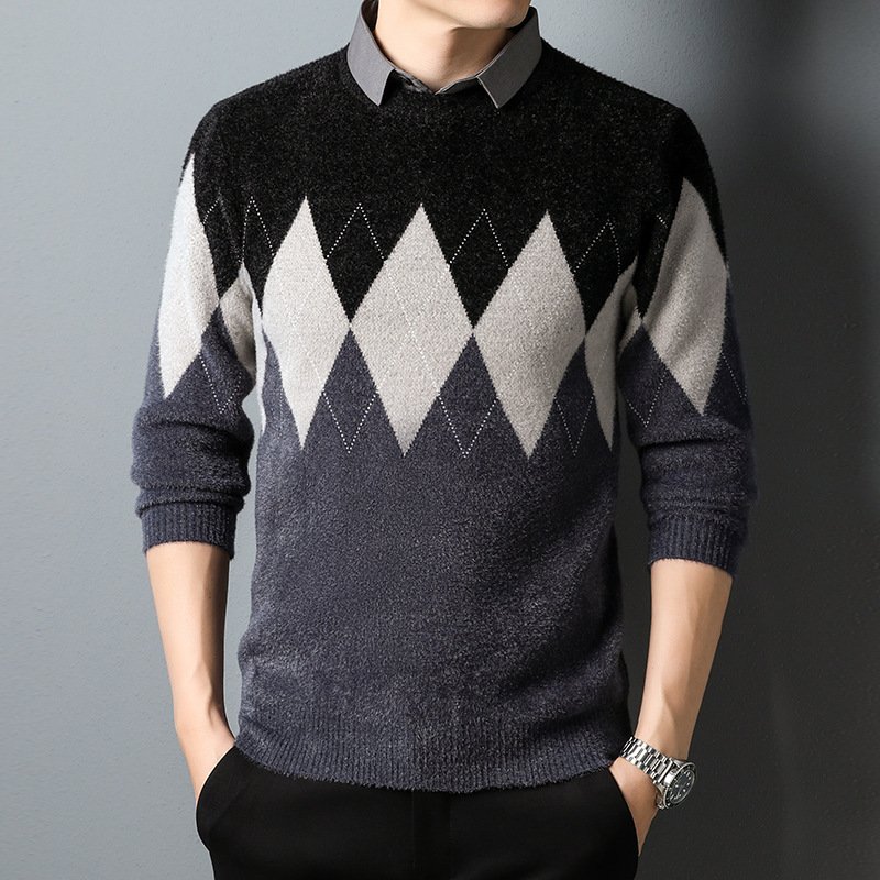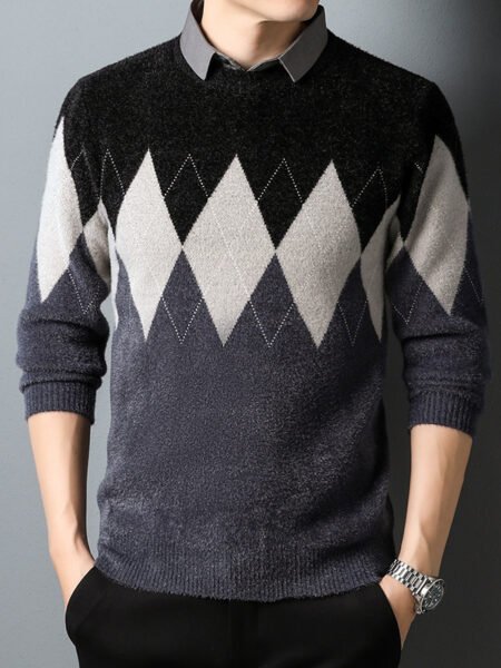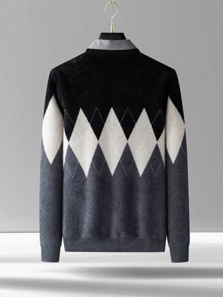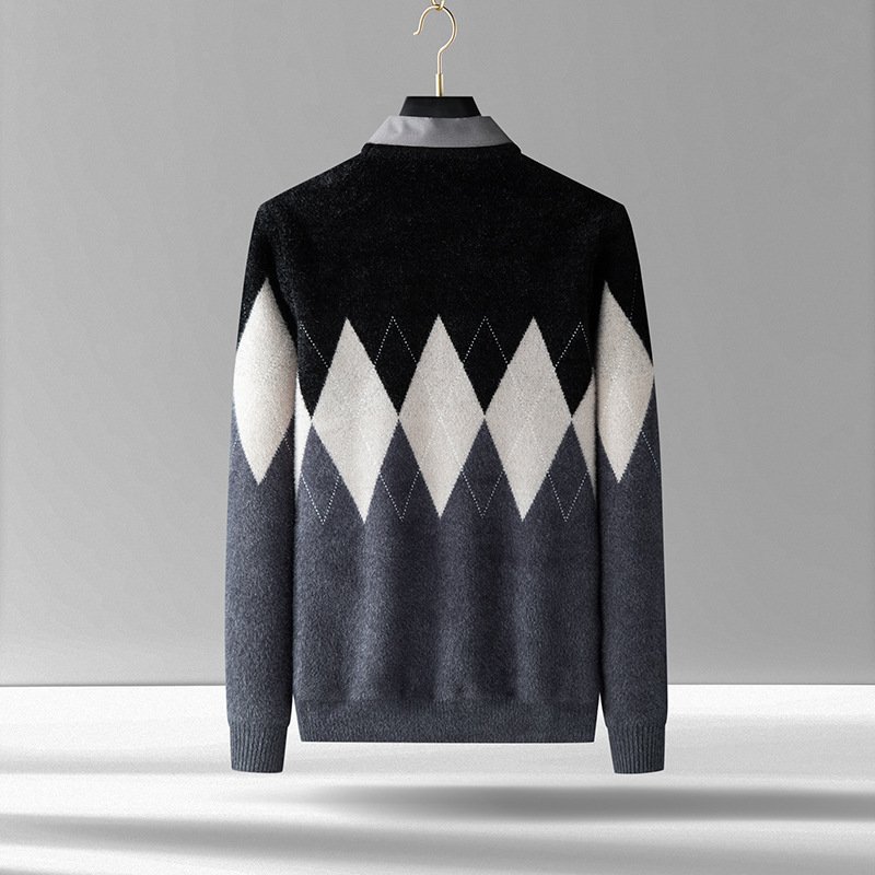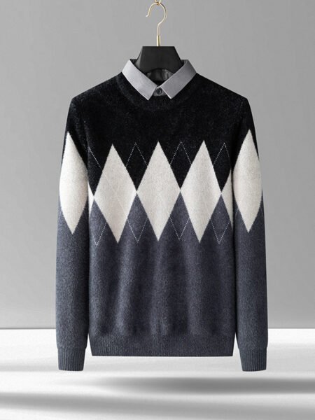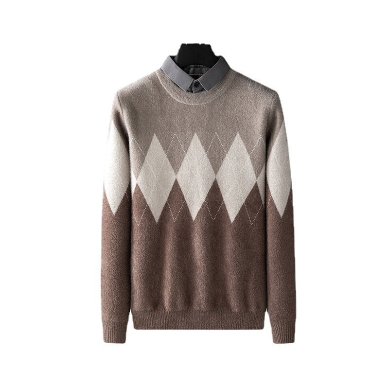Men's Diamond Block Fake Two-piece Imitation Mink Bottoming Shirt