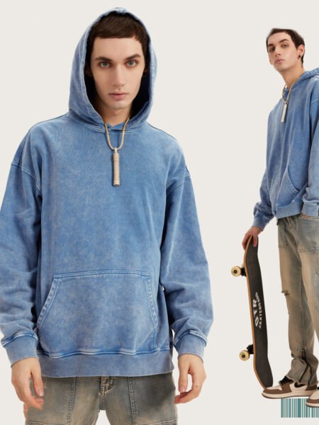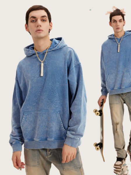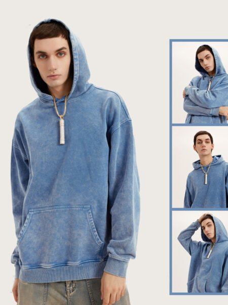 Men's Fashion Simple Washed Old Hooded Terry Sweater