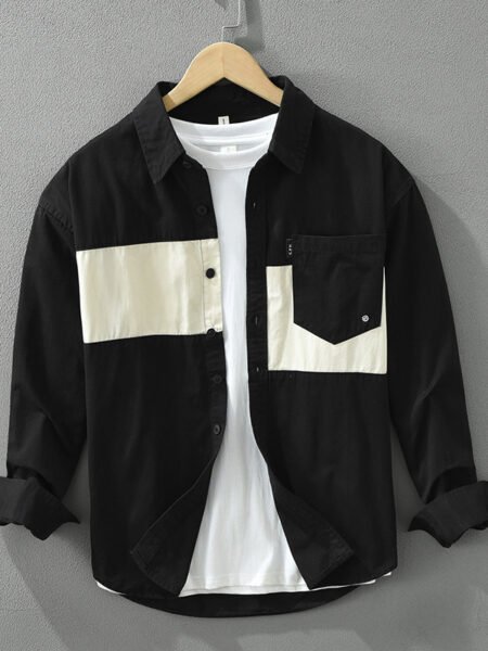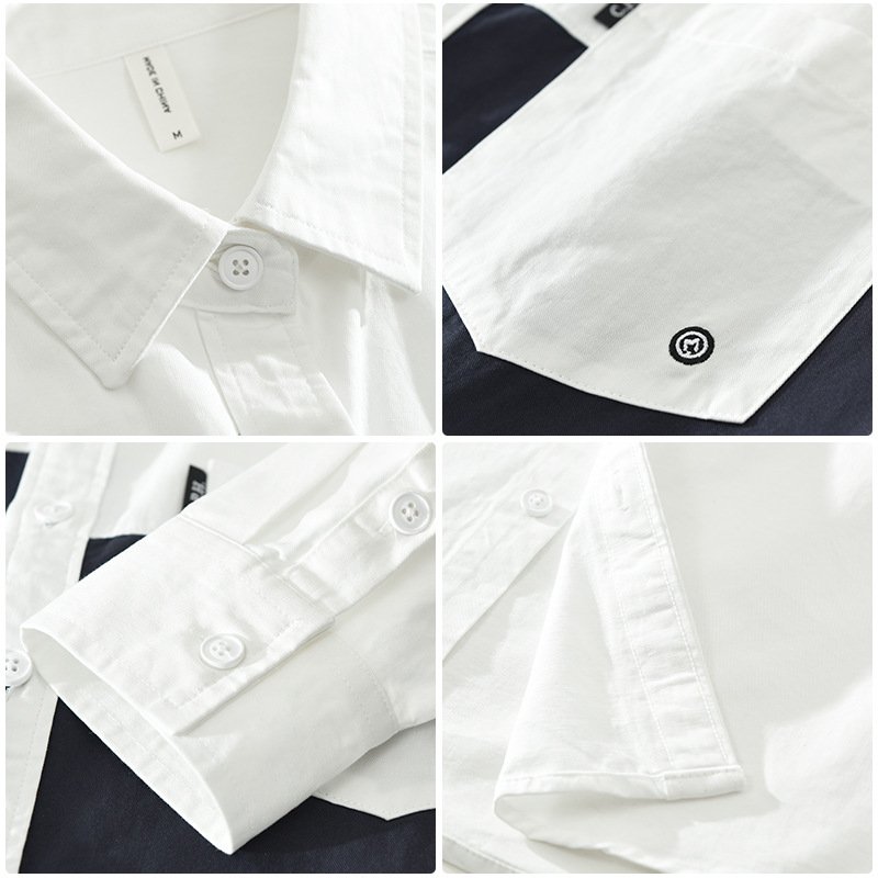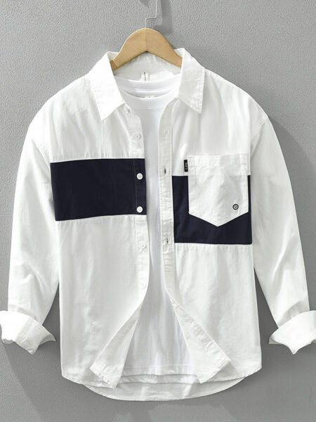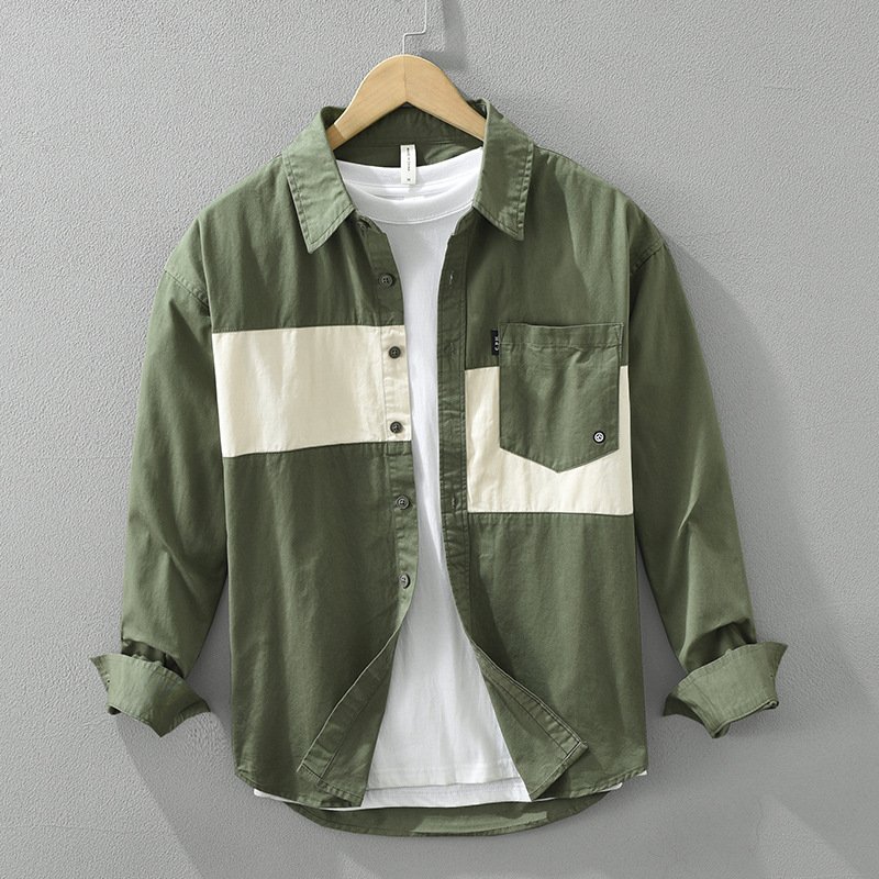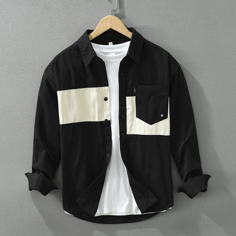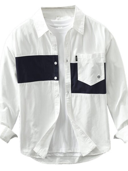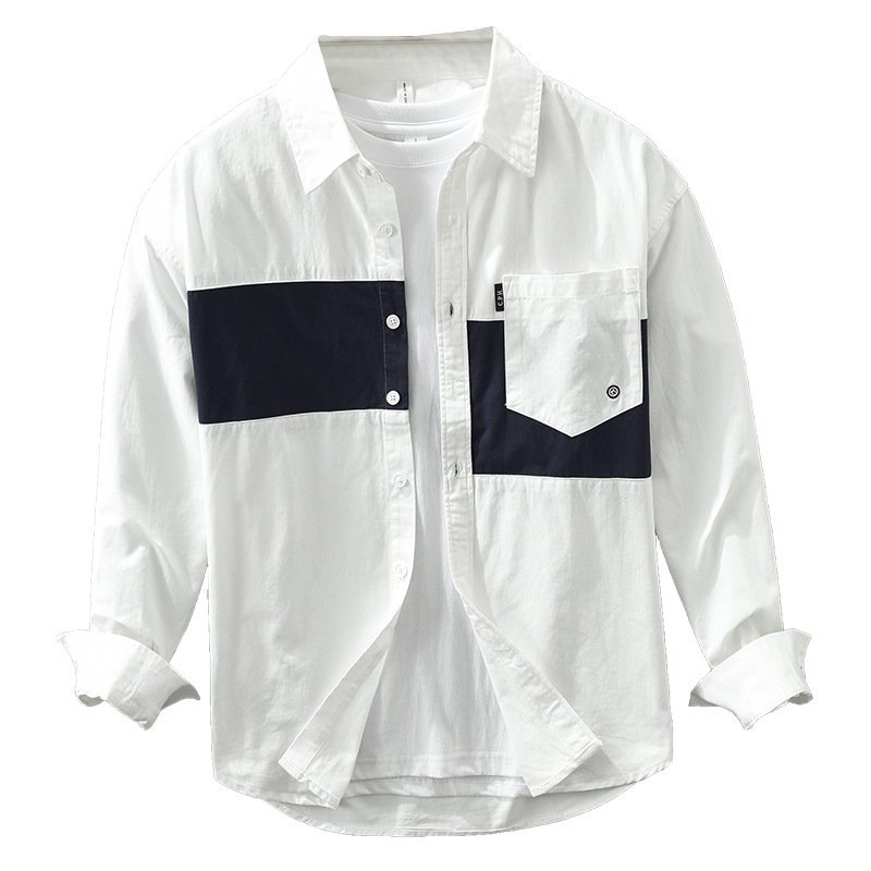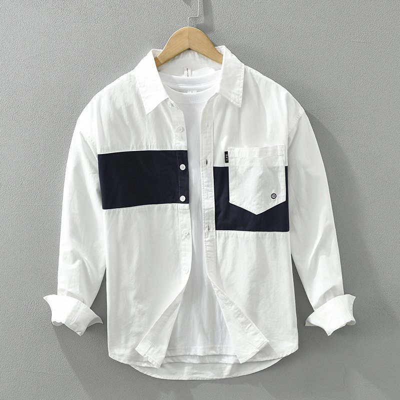 Stitching Shirt Men’s Youth Design Leisure Loose Cotton And Linen Tops