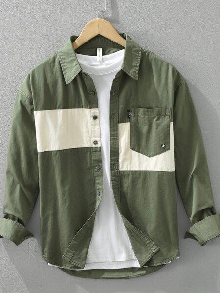 Color Contrast Patchwork Men's Leisure Cargo Shirt