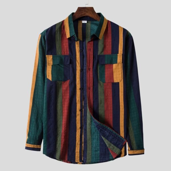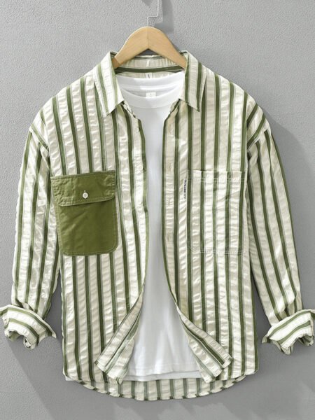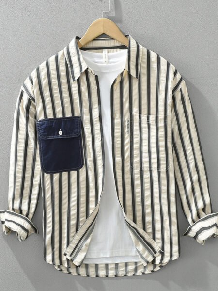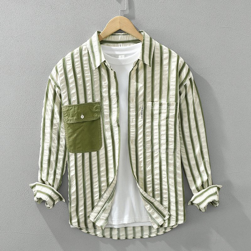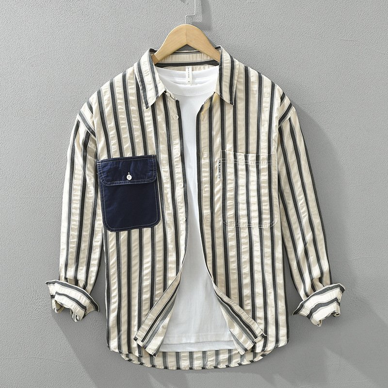 Japanese Style Stripe Long Sleeve Shirt Men