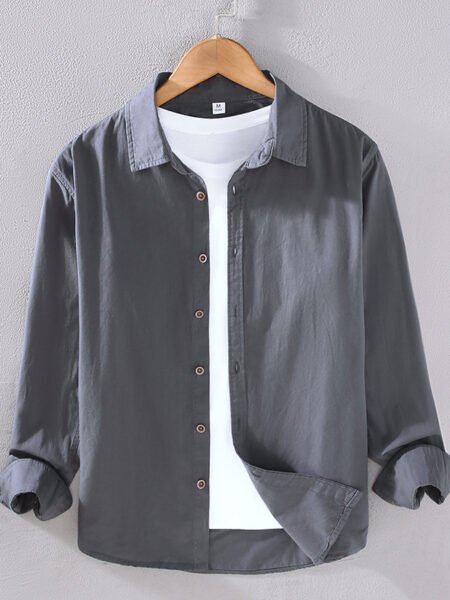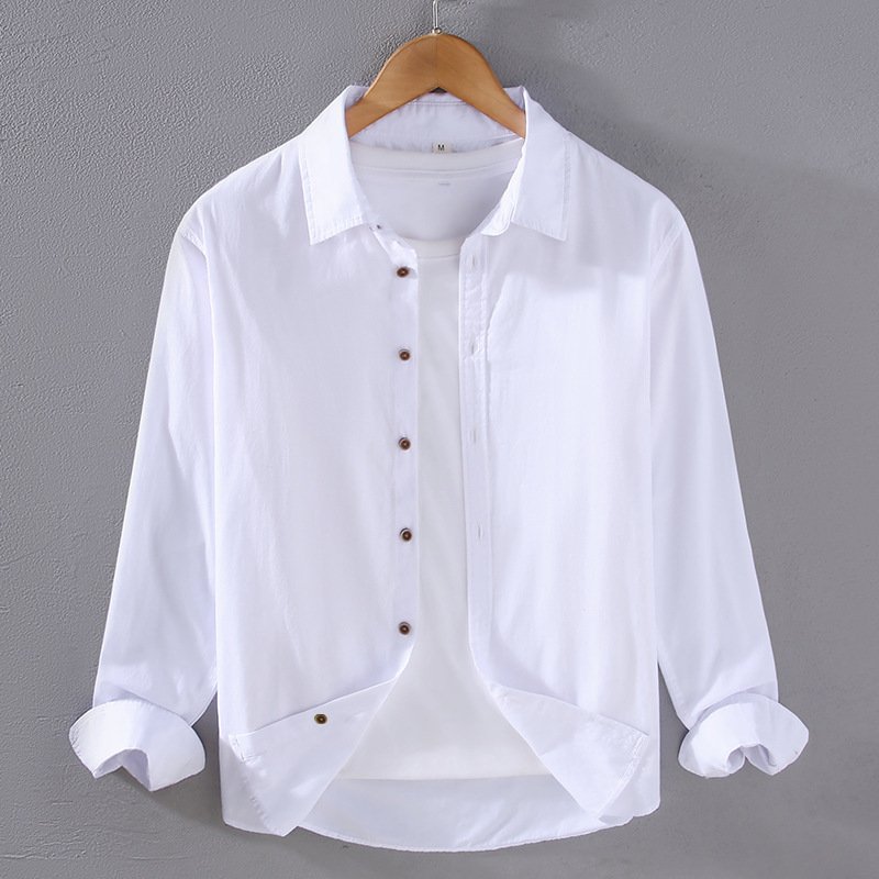 Japanese Style Thin Long Sleeve Shirt Men's Loose Casual Cotton
