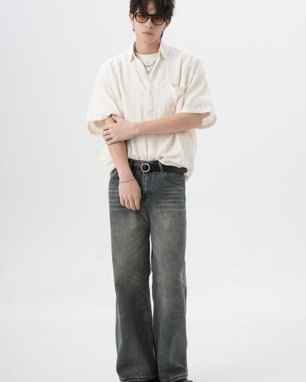 Men’s Patchwork Stitching Cotton Linen Shirt – Youth Loose Fit