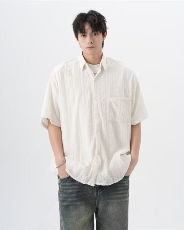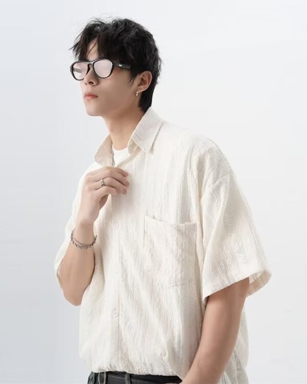Stay fresh and stylish with this patchwork stitching cotton-linen shirt for men. Designed with a loose fit for comfort and a trendy youth look. Perfect for casual and summer wear.
