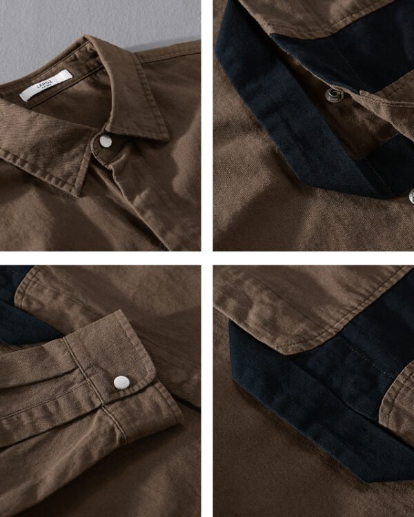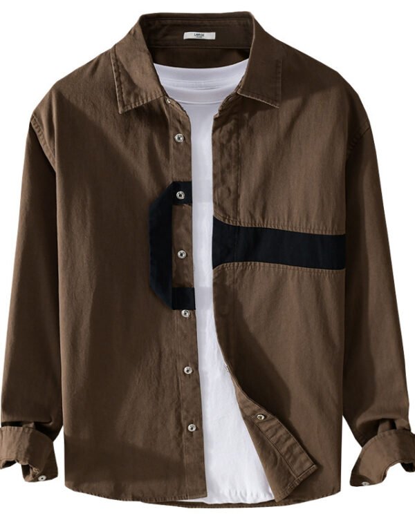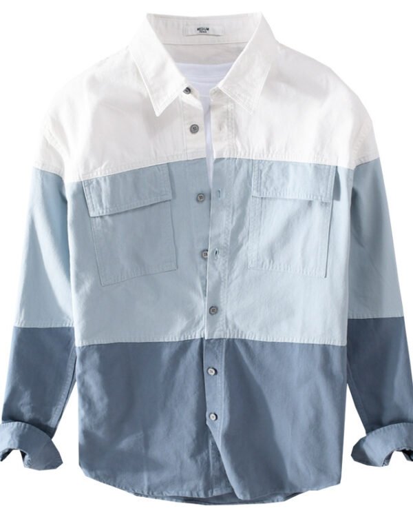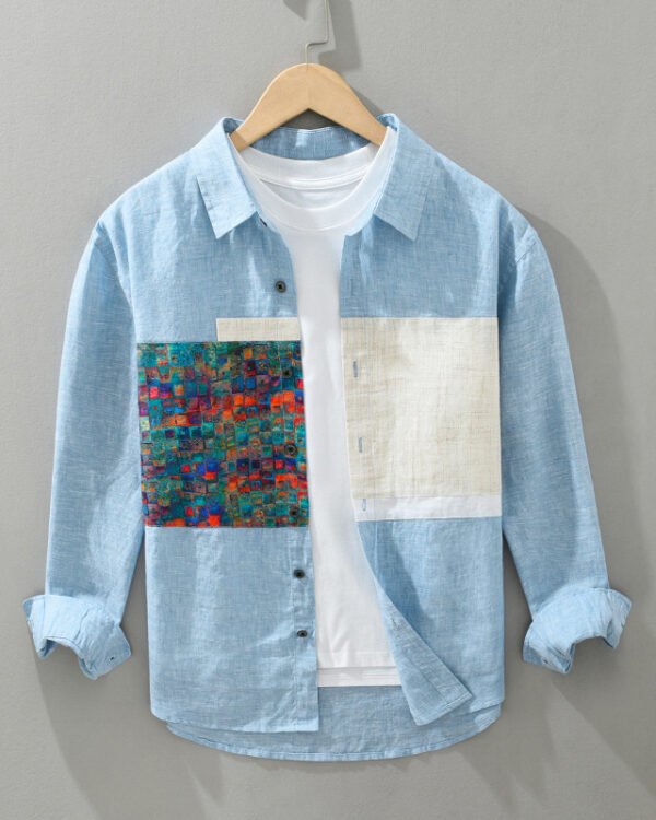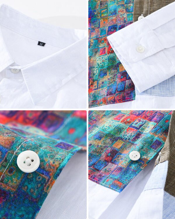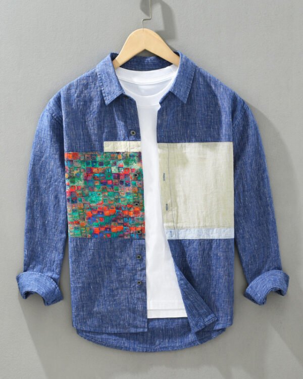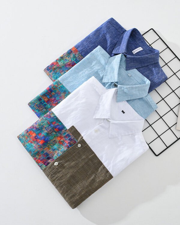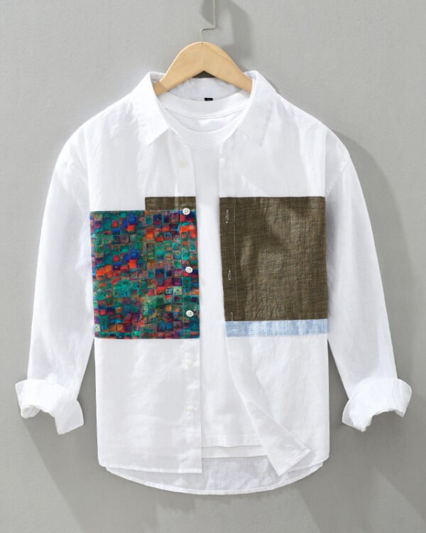 Men’s Patchwork Stitching Cotton Linen Shirt – Youth Loose Fit