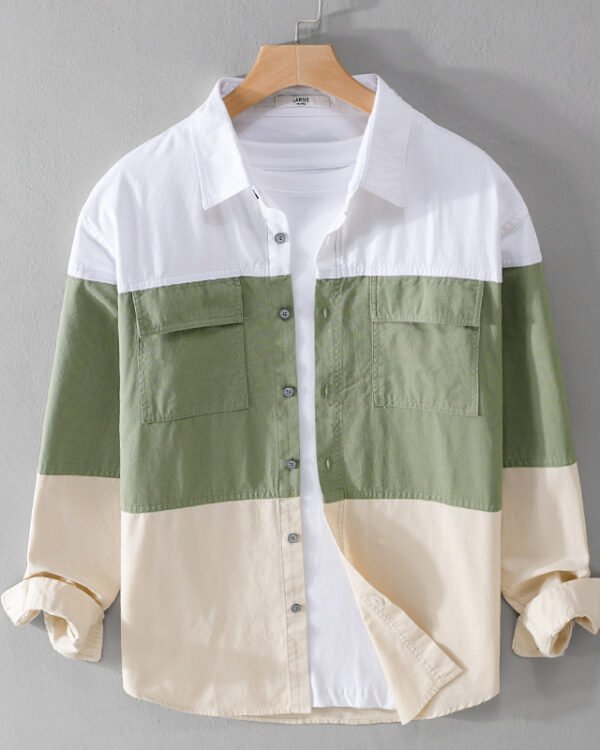 Men’s Color Contrast Patchwork Cargo Shirt – Casual Utility Style Leisure Wear