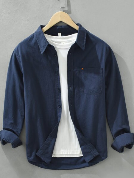Men’s Japanese Style Cotton Shirt – Simple All-Match