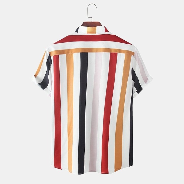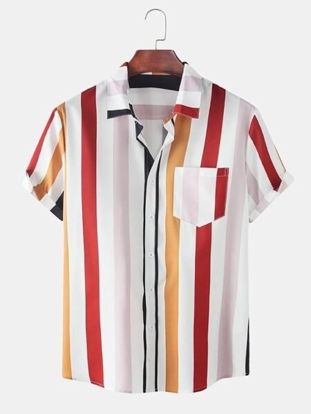 Men’s Striped Short Sleeve Fit Lapel Men’s Shirt