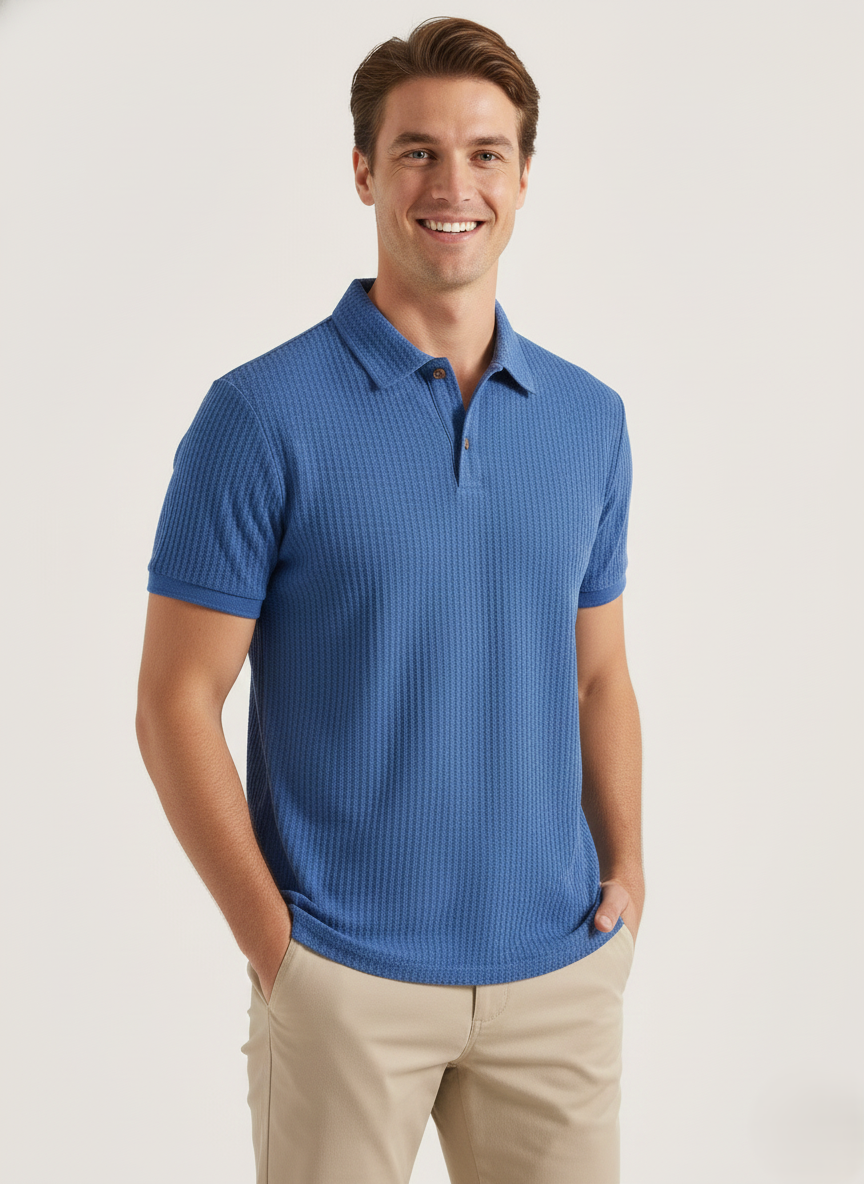 Men’s Short-sleeved Loose Versatile Casual Lapel Stripe Top