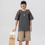 Men’s Ice Silk T-shirt Fifth Pants Suit Solid Color