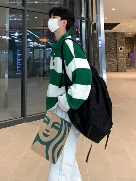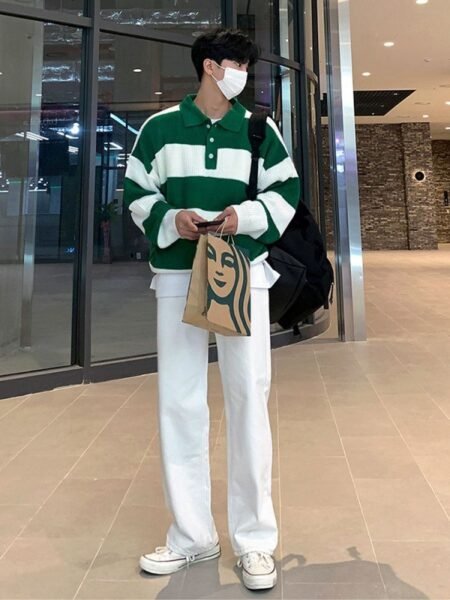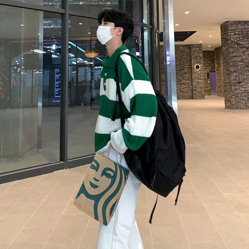 Striped Polo Sweater Men's Autumn And Winter Lapel
