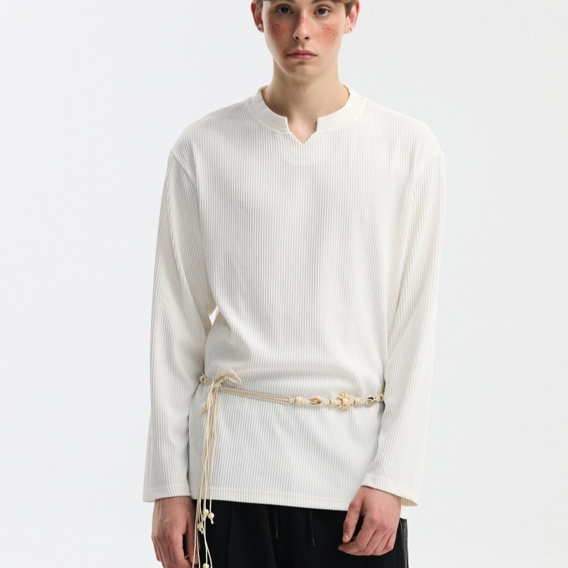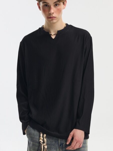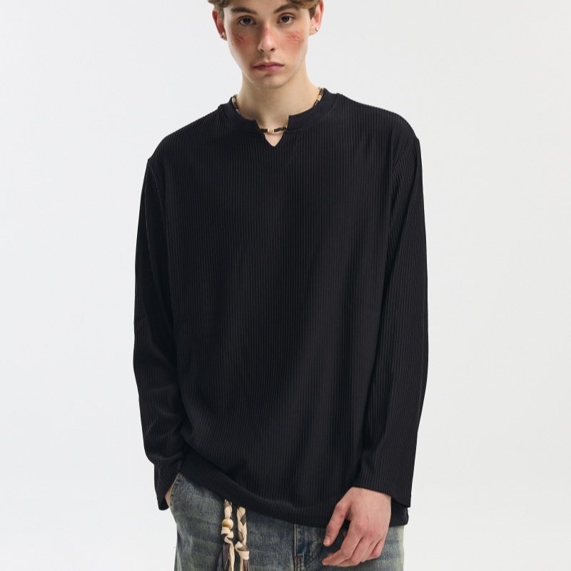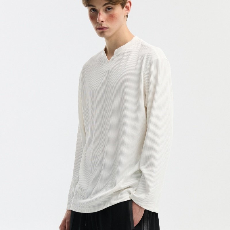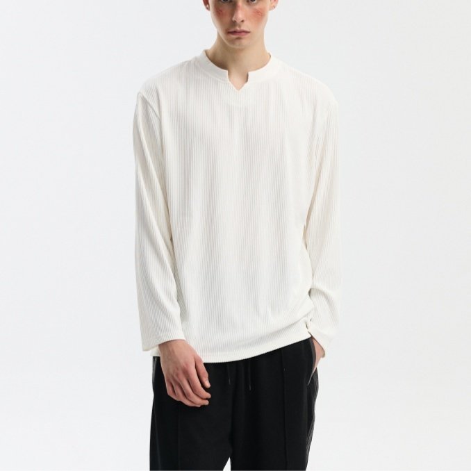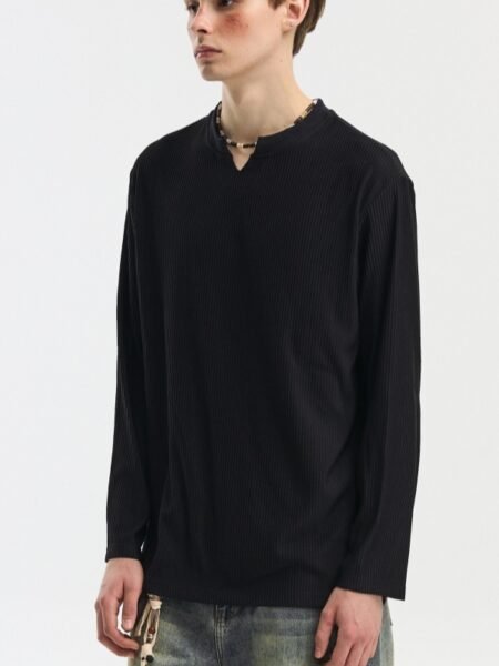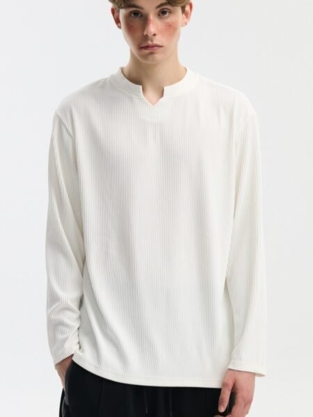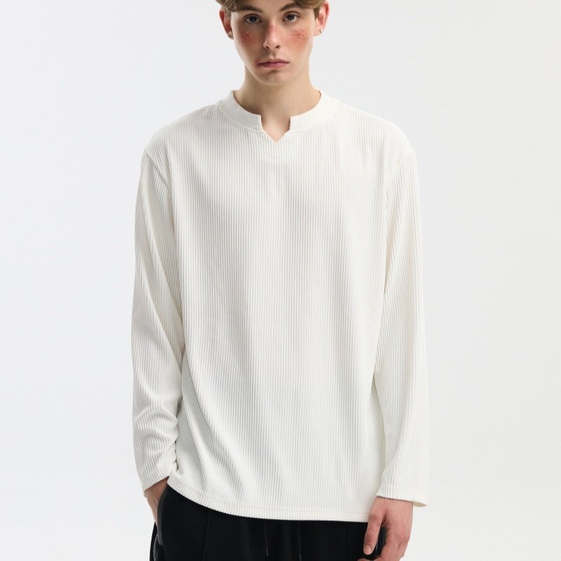 V-neck Long-sleeve Simple Casual Base Shirt