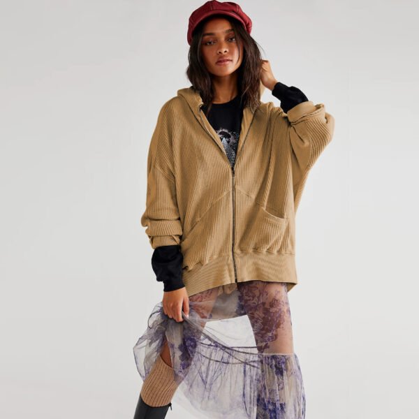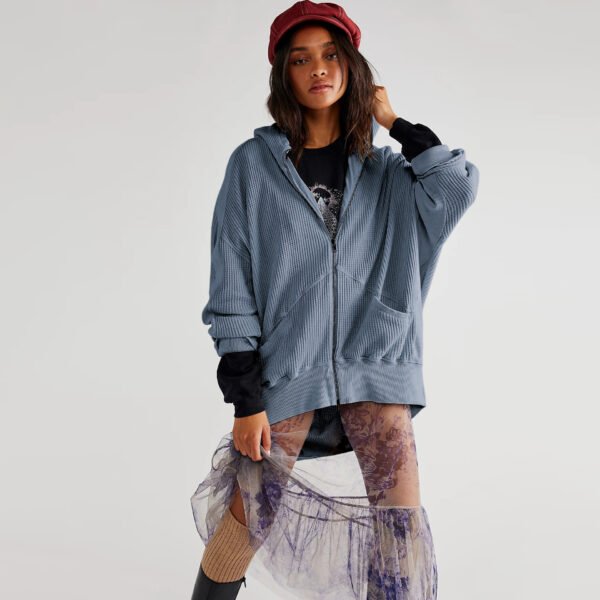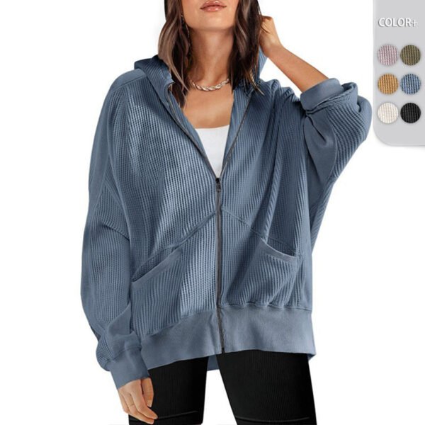 Waffle-knit Cardigan With Zipper Relaxed-fit Women’s Hoodie