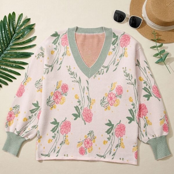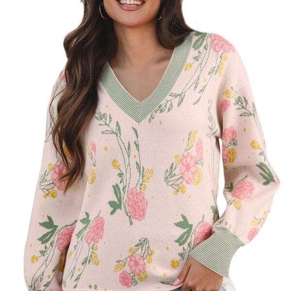 Product information: Material: 52% viscose + 26% polyester + 22% polyamide Color: pink Size: S, M, L, XL Style: casual Neckline: V-neck Silhouette: straight Sleeve length: long sleeve Pattern: floral…