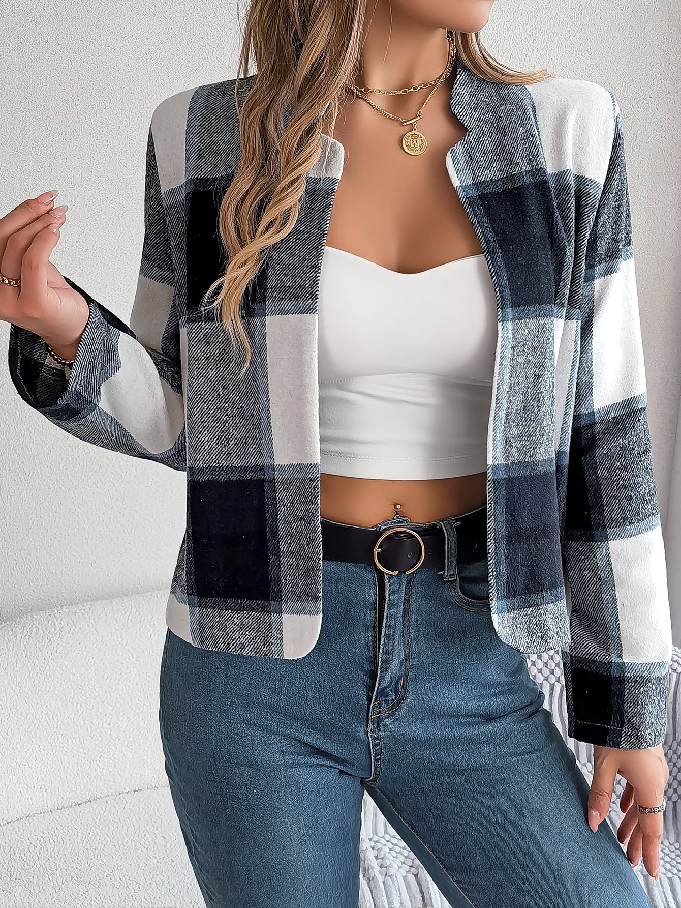 Women's Casual Plaid Long Sleeve Tweed Set