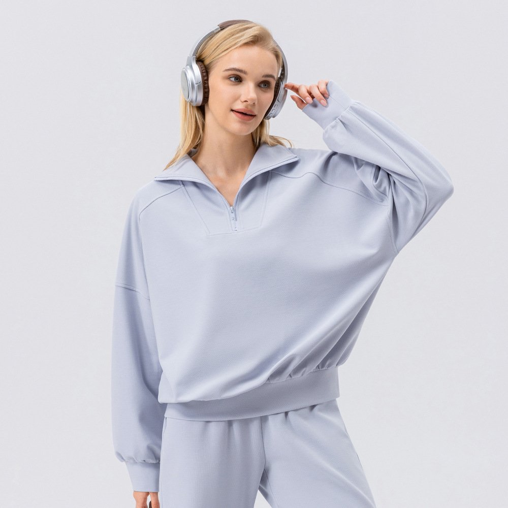 Women's Half Zipper Workout Long Sleeve Loose Outdoor Casual Running Sports Sweatshirt