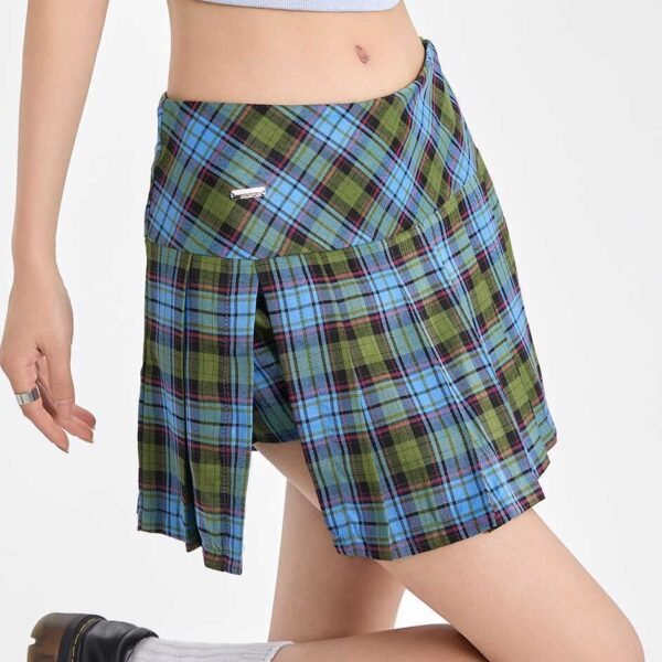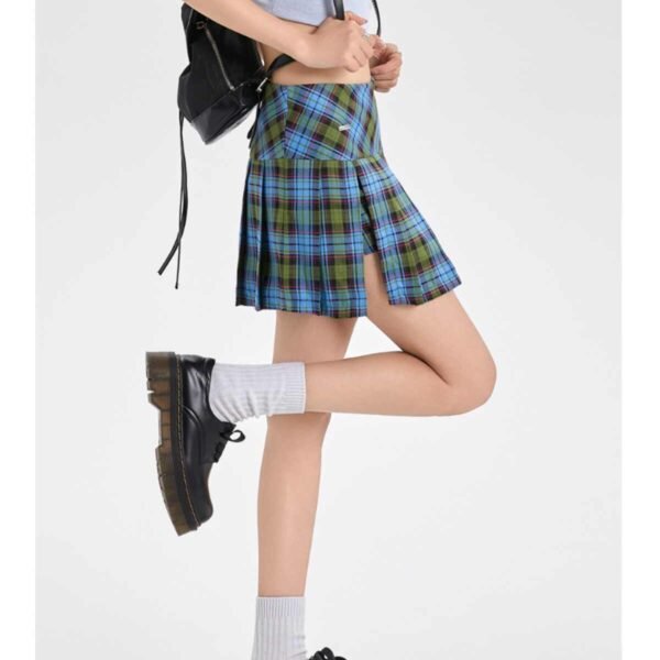 Plaid Skirt Plaid Split High Waist A- Line Skirt