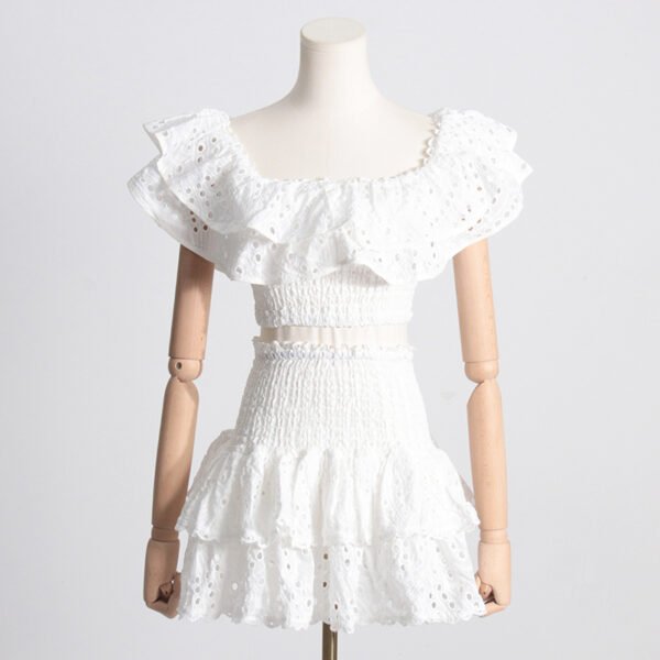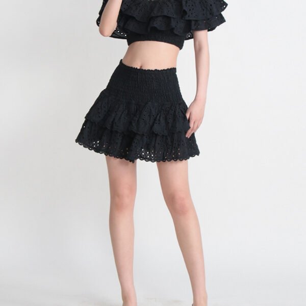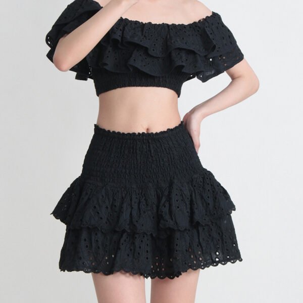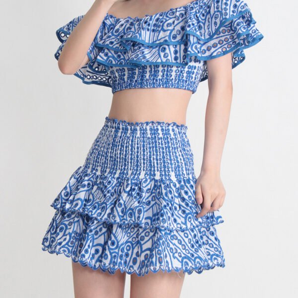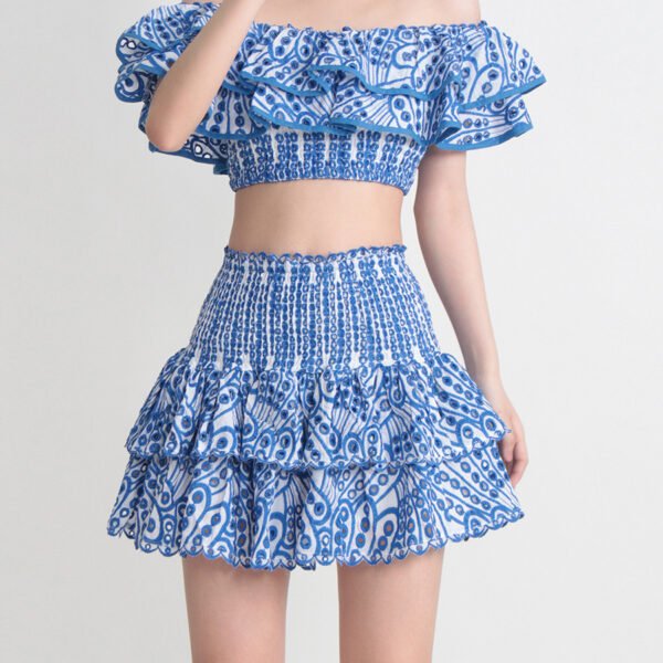 Seaside Vacation Style Two-piece Collar Short Ruffled Shirt High Waist Skirt Outfit