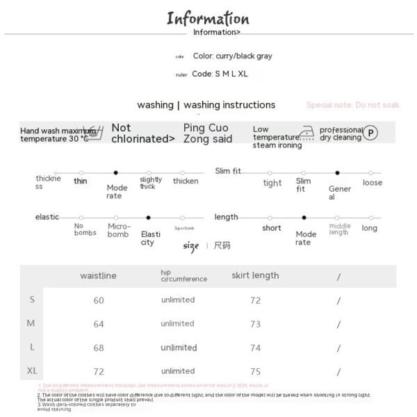 Product information: Skirt Style: A-line skirt Colors: Black, beige, white, army green, brown, blue, green, orange-red, printed red, printed black, printed blue, printed green Elasticity: Slightly stretchy Sizes: S, M,…