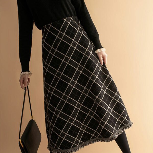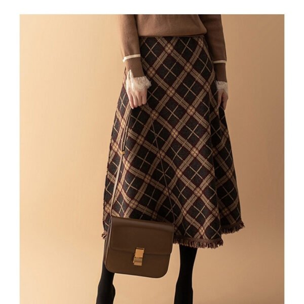 Product information: Pattern: Plaid Fabric name: Wool Skirt type: A- line skirt Color: brown, black and gray Elasticity: inelastic Main fabric composition: Wool Size: S,M,L,XL Style type: temperament commute Skirt…
