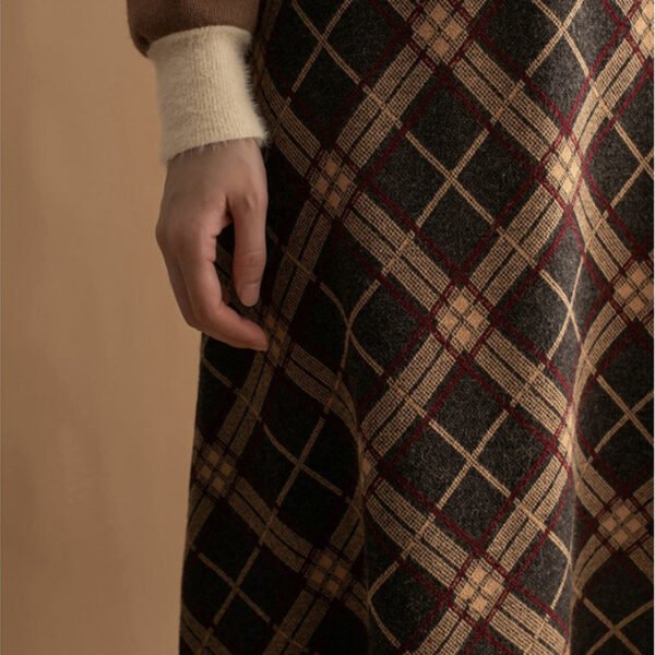 Plaid For Women Big Hem Skirt Wool Midi Dress