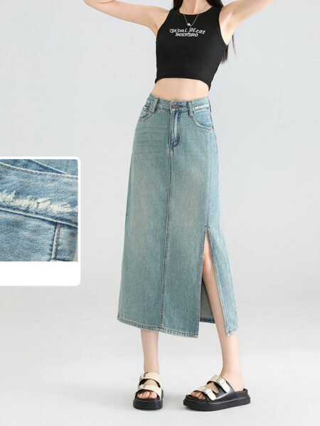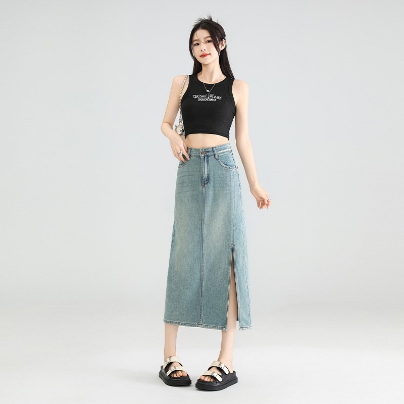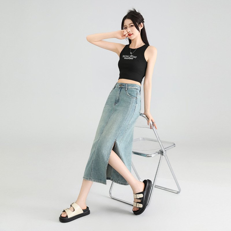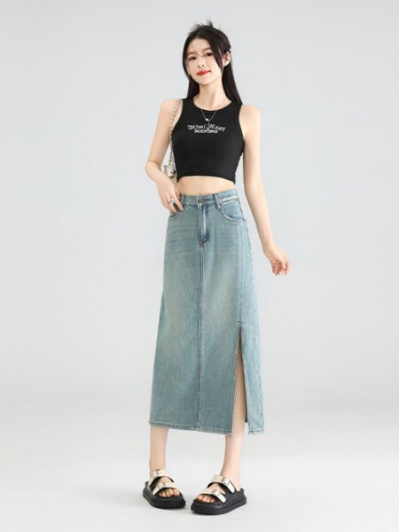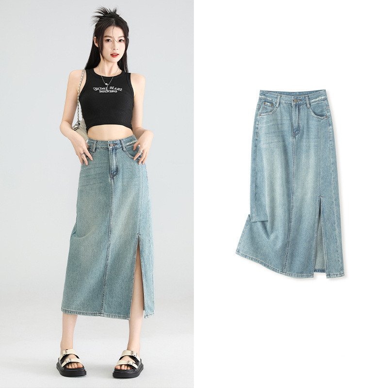 Product information: Fabric name: denim Skirt type: denim skirt Color: blue Elasticity: inelastic Main fabric composition: Cotton Size: M,L,XL Note: 1. Asian sizes are 1 to 2 sizes smaller than…