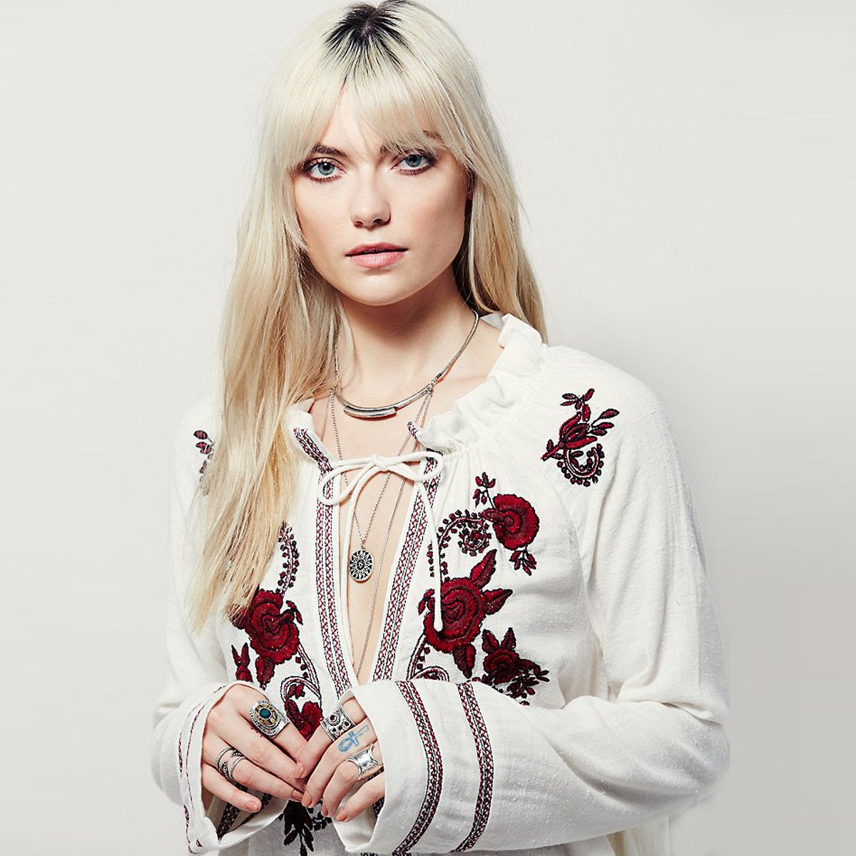 Add a boho touch to your style with this lace-up embroidered floral top. Designed for a relaxed and artistic look. Perfect for casual and summer wear.