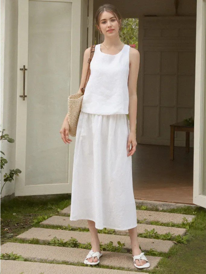 Stay chic and cool with this linen vest top for women. Features a slimming cross-back design for a flattering fit. Perfect for versatile summer styling.