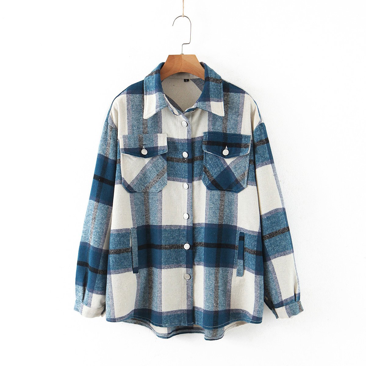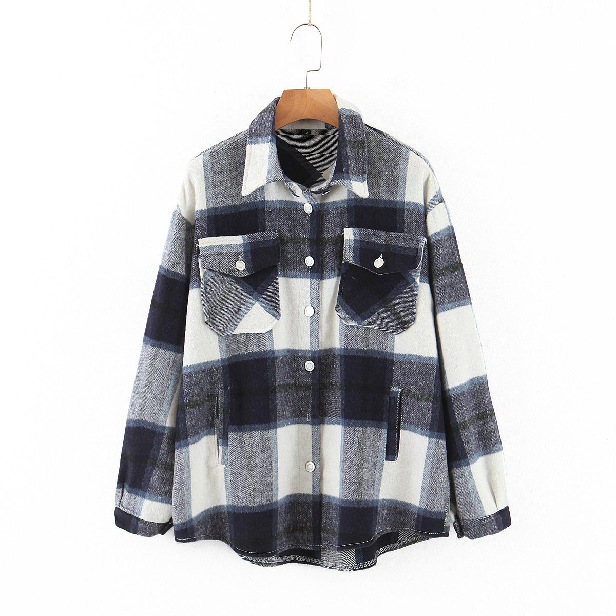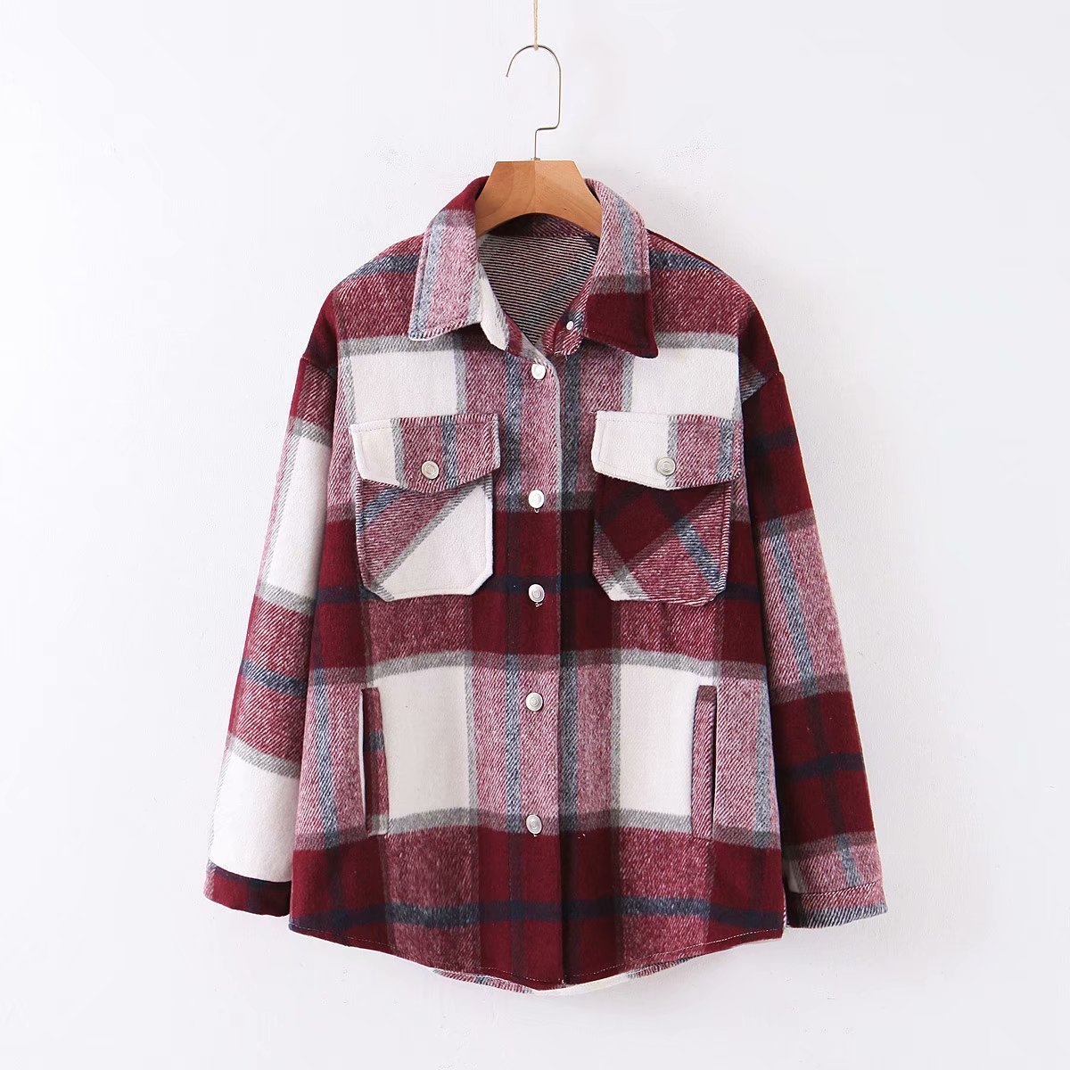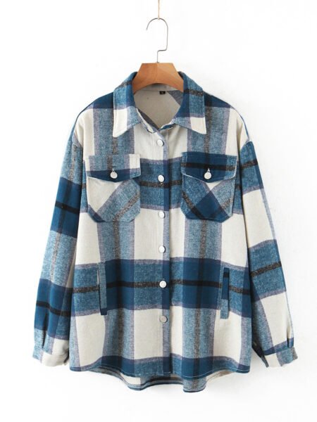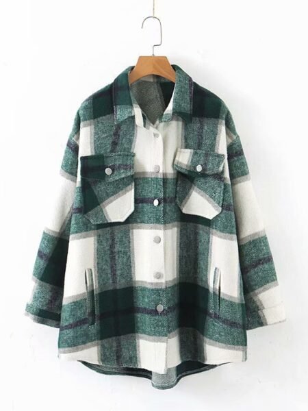 New Lapel Woolen Plaid Shirt Jacket Women