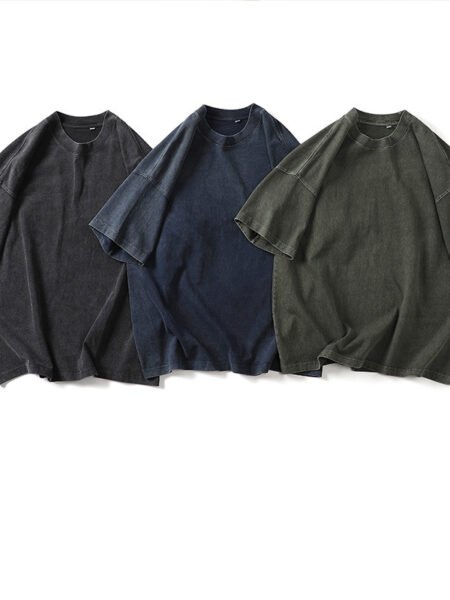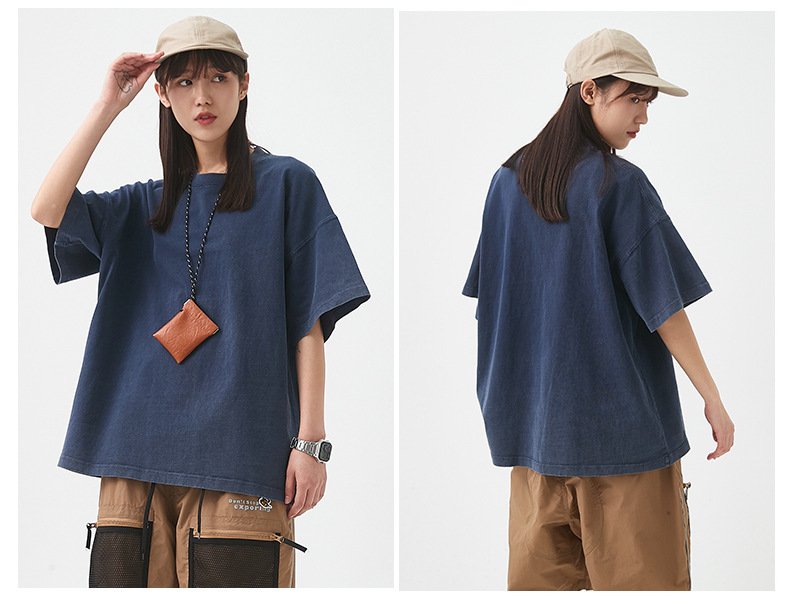 Top Embroidery Heavy Washed Old Short Sleeve T-shirt For Men And Women