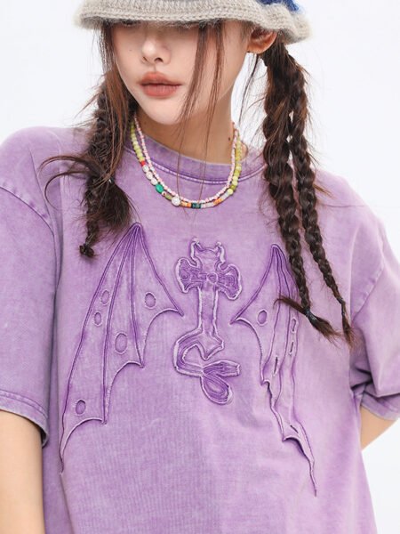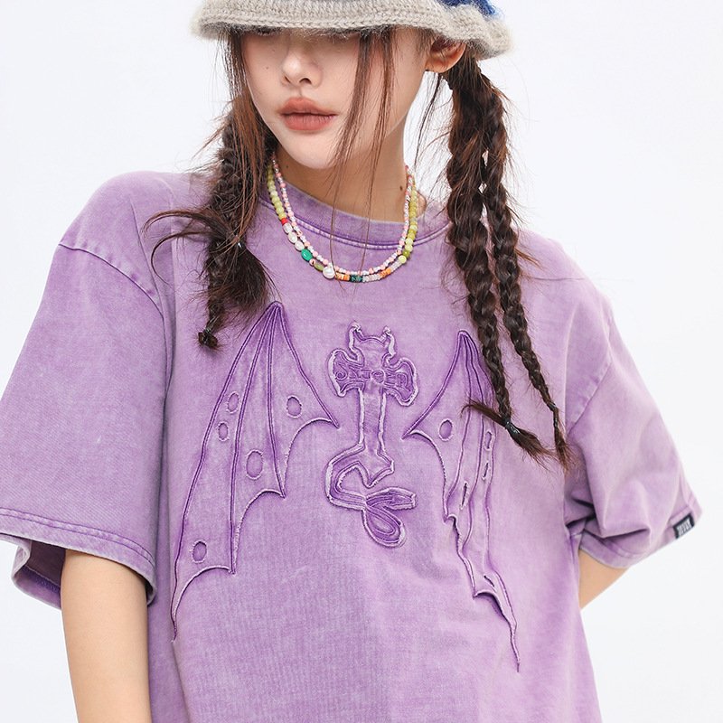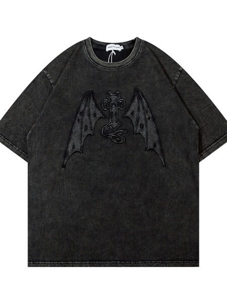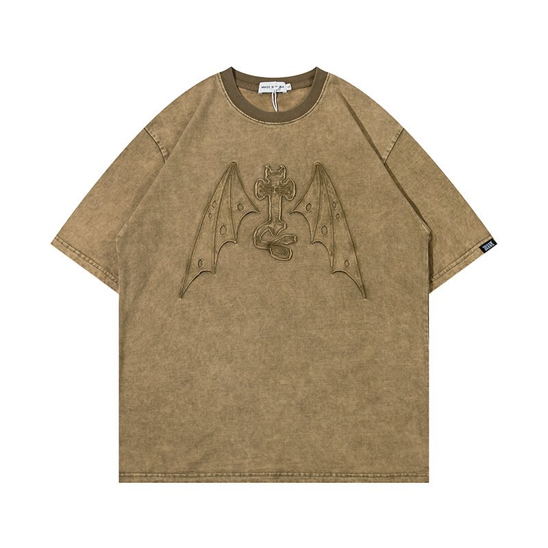 Top Embroidery Heavy Washed Old Short Sleeve T-shirt For Men And Women