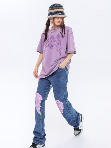 Ripped Hollow-out Stitching Edging Loose Short Sleeve