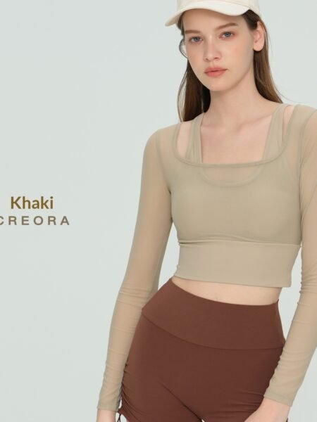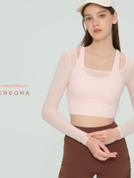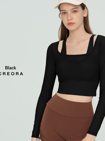 Womens Long-Sleeve Yoga Sports Top With Built-In Bra Pads